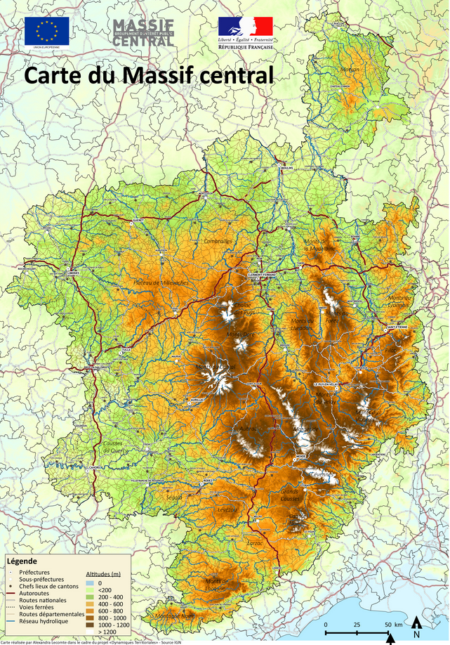 Le Massif Central s’étend sur 4 Régions (Auvergne-Rhône-Alpes, Bourgogne-Franche-Comté, Nouvelle-Aquitaine, Occitanie) et 22 départements (Allier, Ardèche, Aude, Aveyron, Cantal, Corrèze, Côte-d’Or, Creuse, Gard, Hérault, Loire, Haute-Loire, Lot, Lozère, Nièvre, Puy-de-Dôme, Rhône, Saône-et-Loire, Tarn, Tarn-et-Garonne, Haute-Vienne, Yonne).