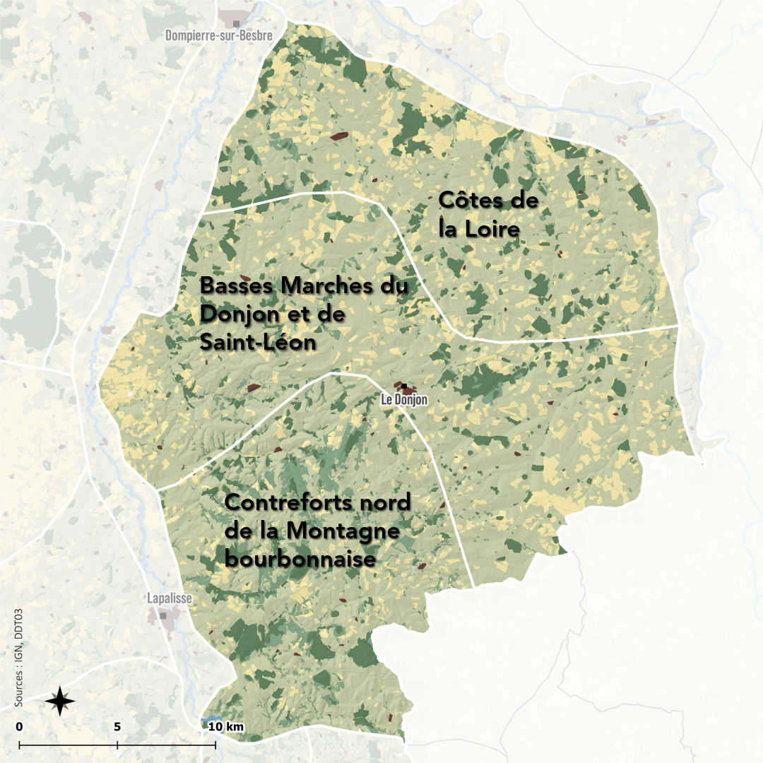 Trois unités paysagères composent cet ensemble : "les Côtes de la Loire", "les Basses Marches du Donjon et de Saint-Léon", "les Contreforts nord de la Montagne bourbonnaise".