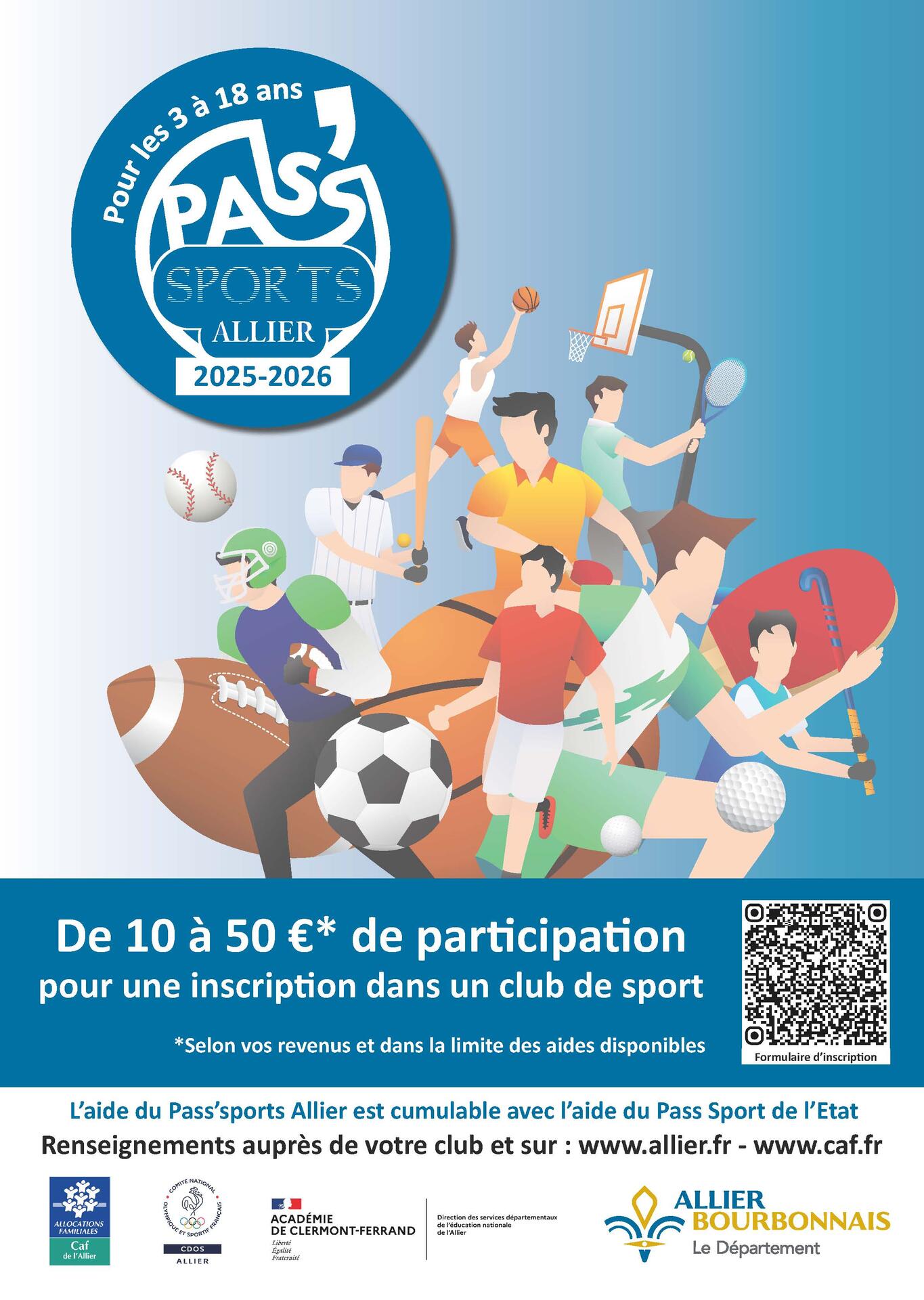 Le Conseil départemental, la CAF 03, le SDJES de l’Allier et le CDOS Allier constituent les quatre partenaires de l’opération Pass’Sports Allier. Cette initiative facilite l’accès à la pratique sportive pour les jeunes issus de familles modestes.