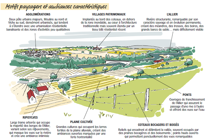 Cinq unités composent cet ensemble : "les Tresses du Val d’Allier", le "Val d’Allier moulinois", les "Méandres du Val d’Allier", le "Val d’Allier vichyssois" et les "Forêts et bocage du Val d’Allier*".