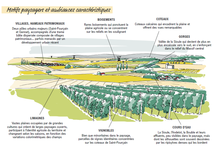 La Vallée de la Sioule, Limagnes et vignobles est une vaste plaine agricole située entre le Val d’Allier et la Combraille. Elle est traversée par la Sioule, l’un des affluents majeurs de l’Allier. Des paysages singuliers ponctuent ce territoire majoritairement composé de grandes cultures, et constituent des points d’attrait de cet ensemble paysager, comme les coteaux viticoles de Saint-Pourçain ou les gorges discrètes de la Sioule.