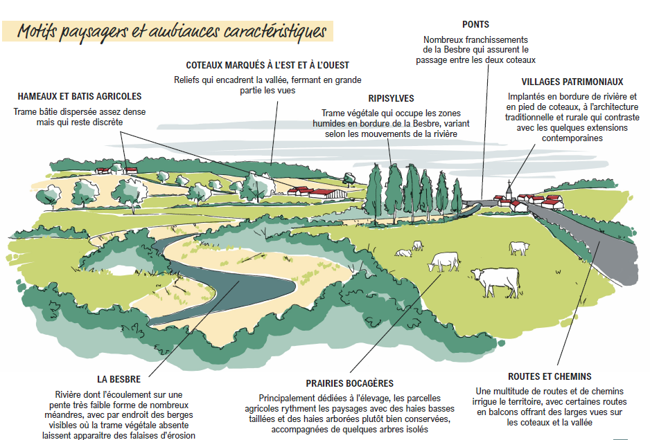 Une seule unité paysagère compose cet ensemble (la Vallée de la Besbre), du fait d’une grande homogénéité des paysages et de leurs composantes sur l’ensemble de la vallée.