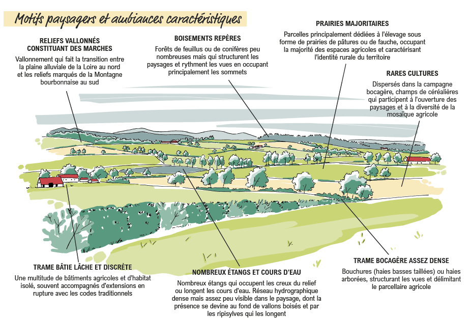 Trois unités paysagères composent cet ensemble : "les Côtes de la Loire", "les Basses Marches du Donjon et de Saint-Léon", "les Contreforts nord de la Montagne bourbonnaise".