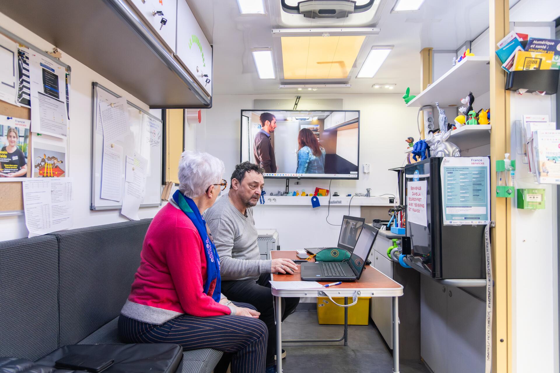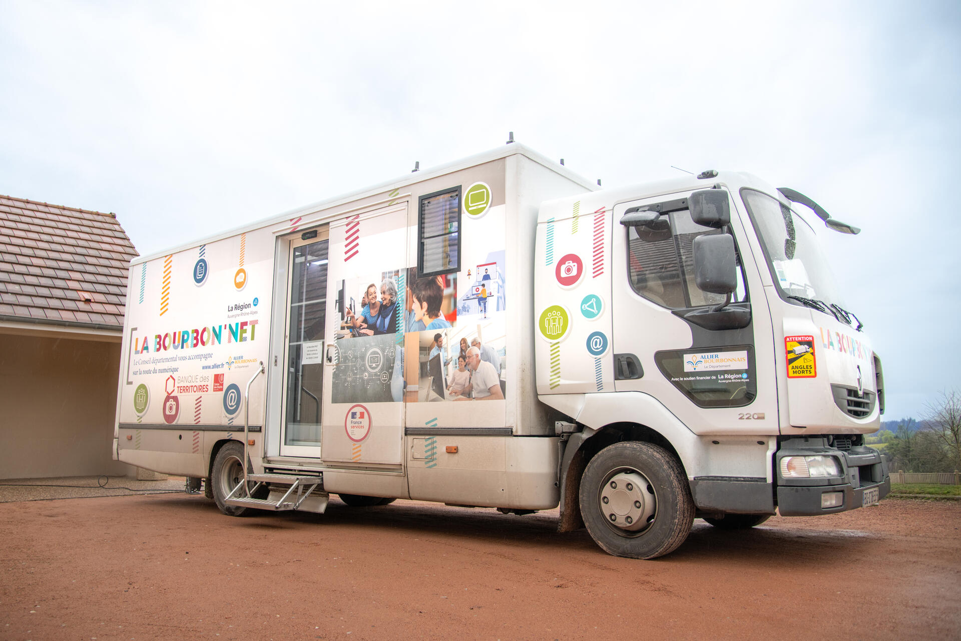 Depuis 2019, le bus numérique, la Bourbon’Net, sillonne les routes de l’Allier. Du lundi au vendredi, il s’arrête dans une commune rurale. Ses agents de bord proposent aux habitants un accompagnement personnalisé, par exemple pour des démarches administratives en ligne, un accès gratuit à internet ou encore un point sur l’évolution de leur matériel informatique.